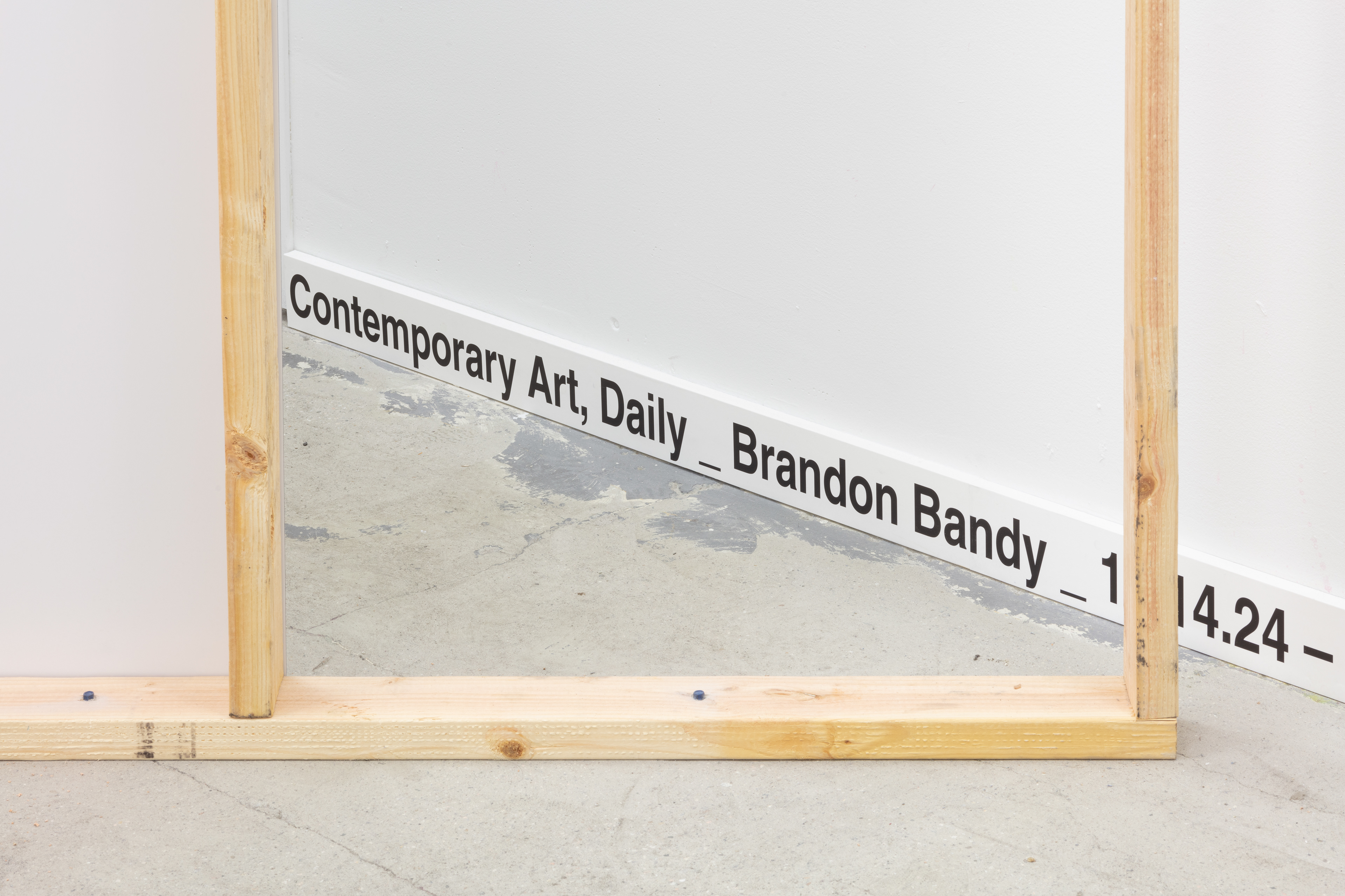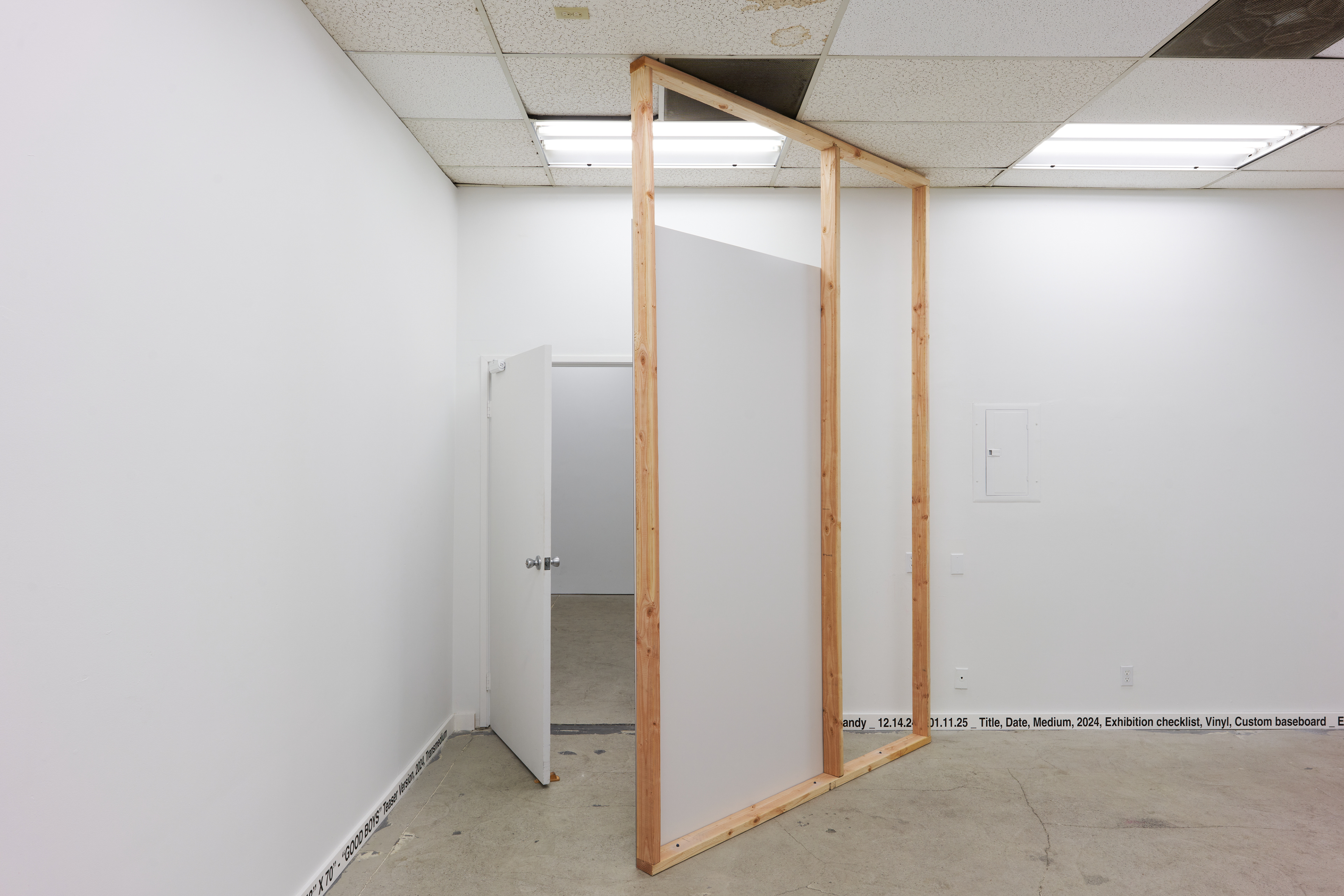 Title, Date, Medium (detail), 2024, Exhibition checklist, vinyl, custom baseboard