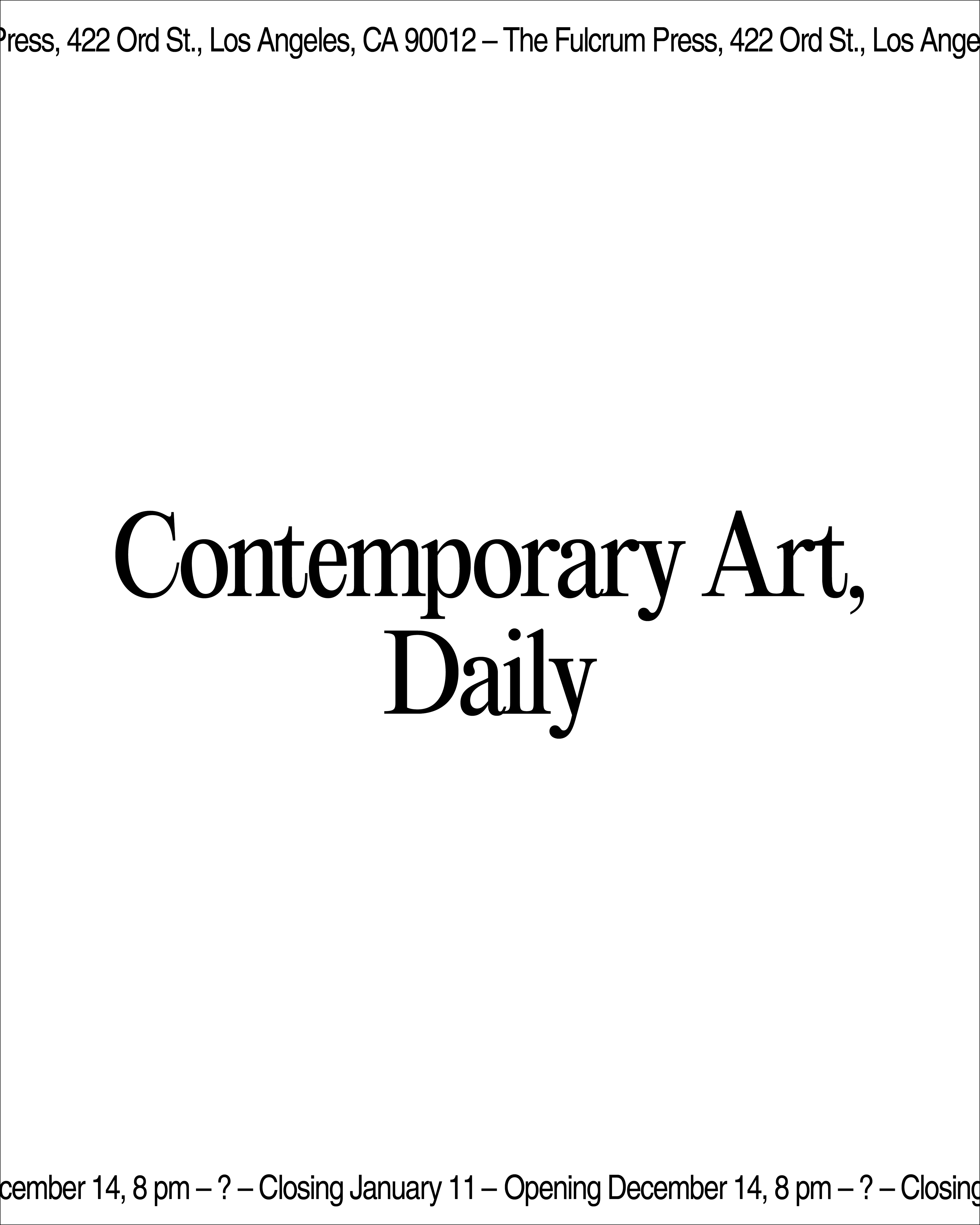 Solo exhibition at The Fulcrum Press, Los Angeles, Organized by Josh Schaedel