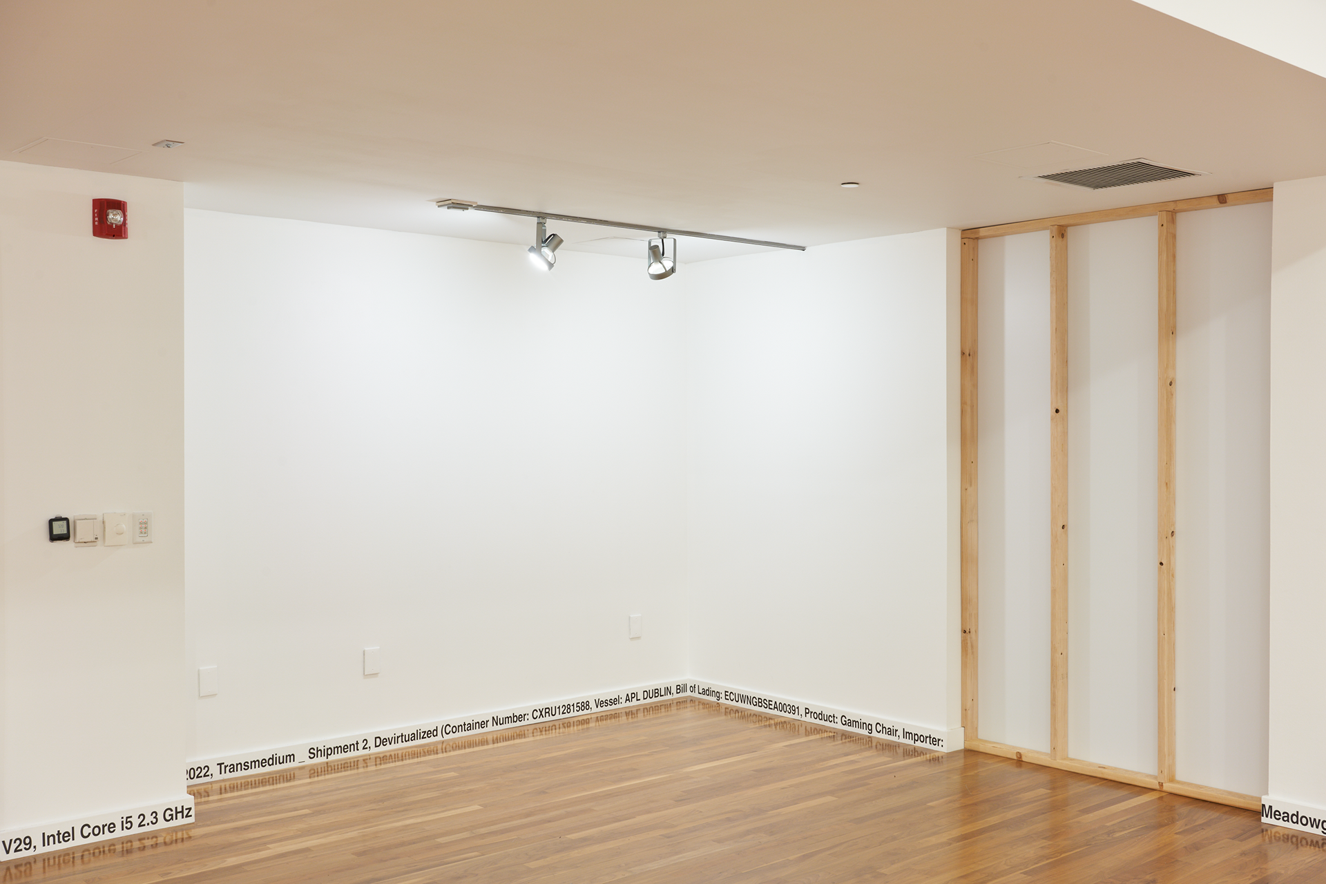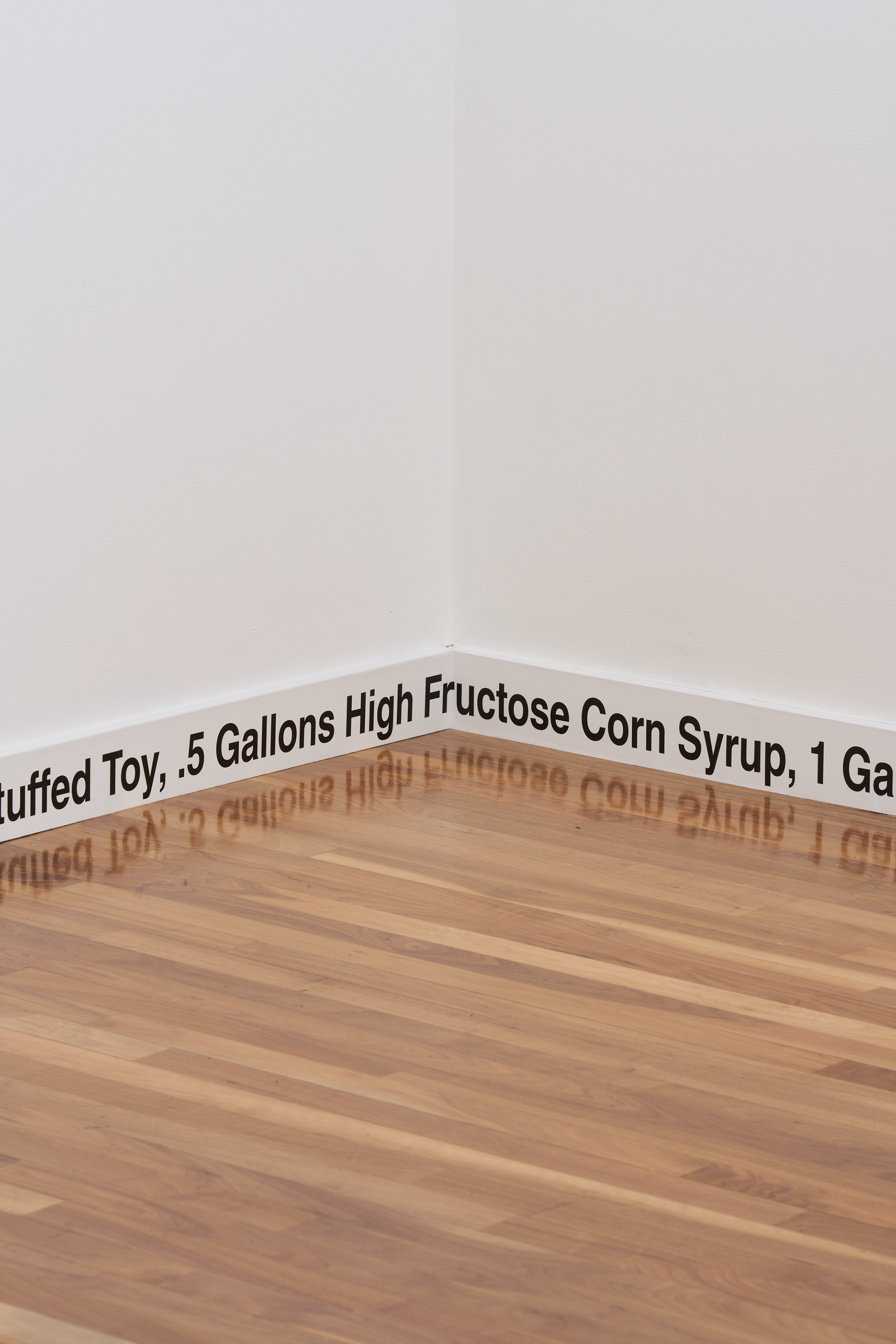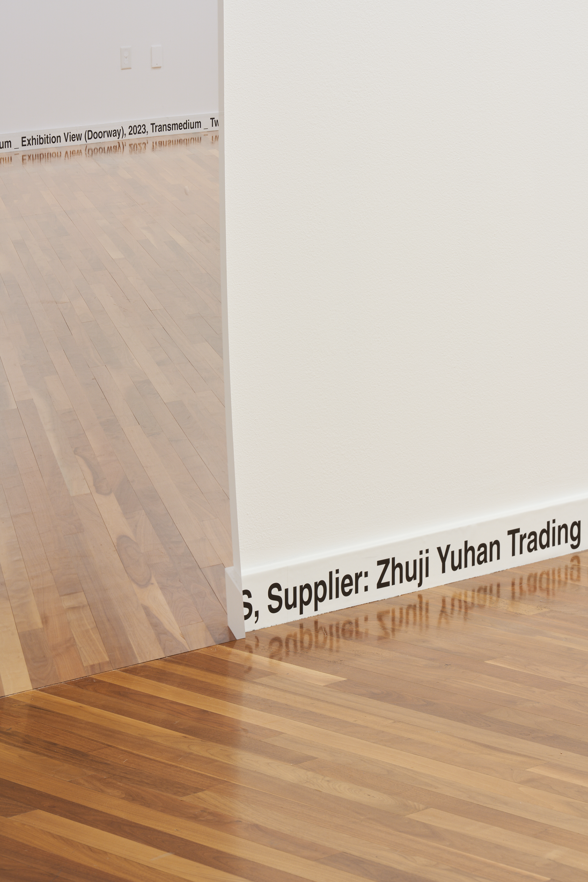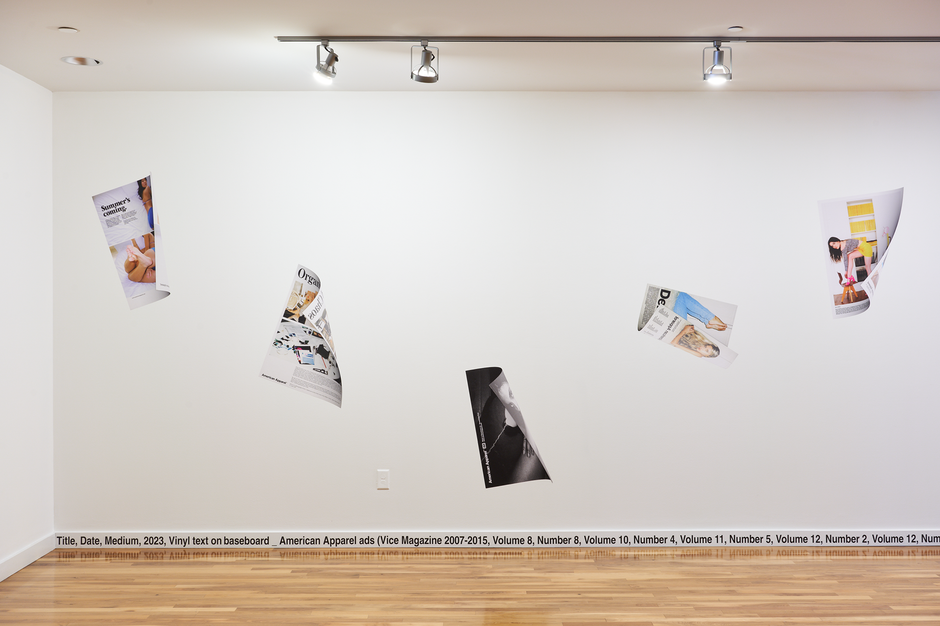 Title, Date, Medium, 2023, Exhibition checklist as vinyl on baseboard