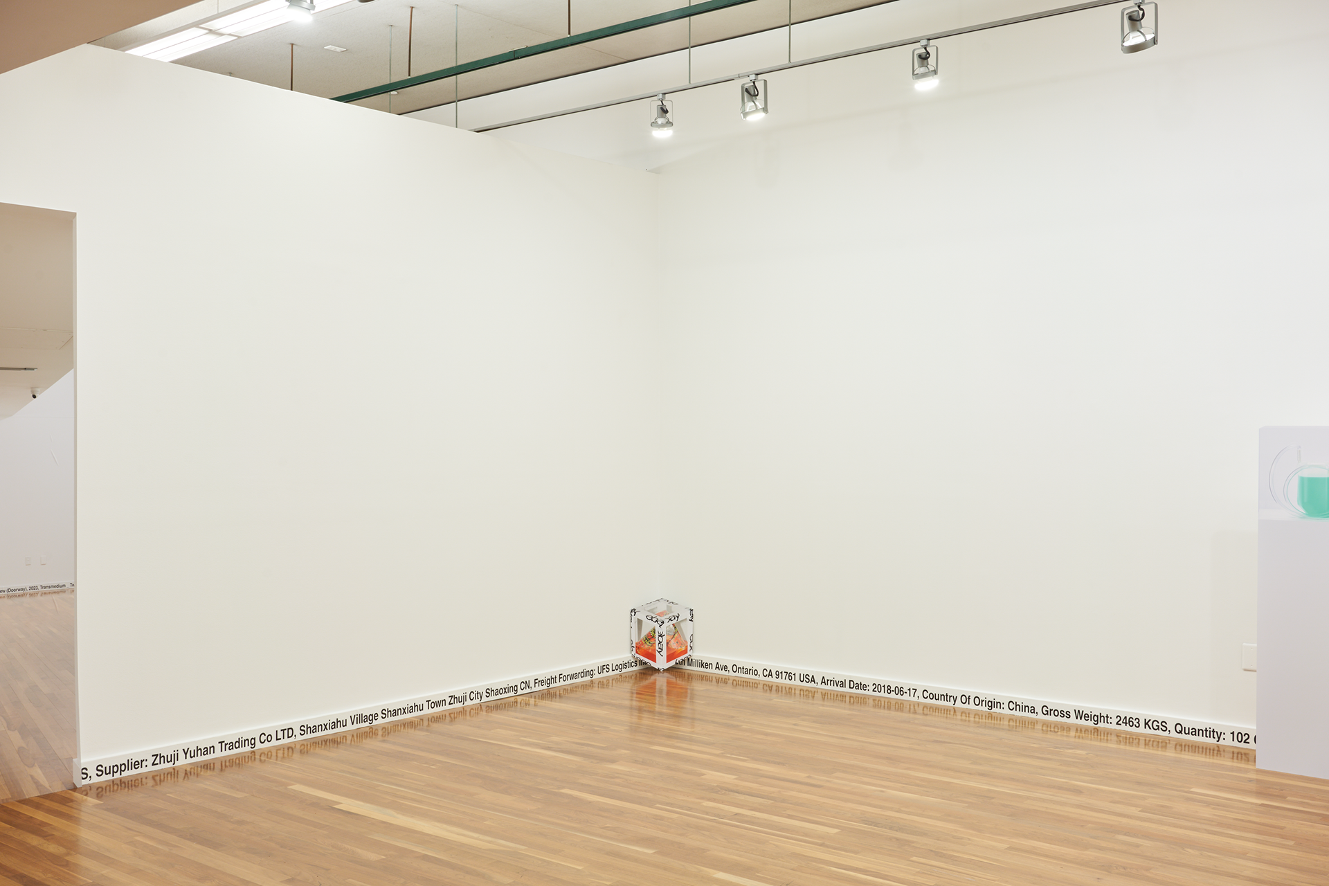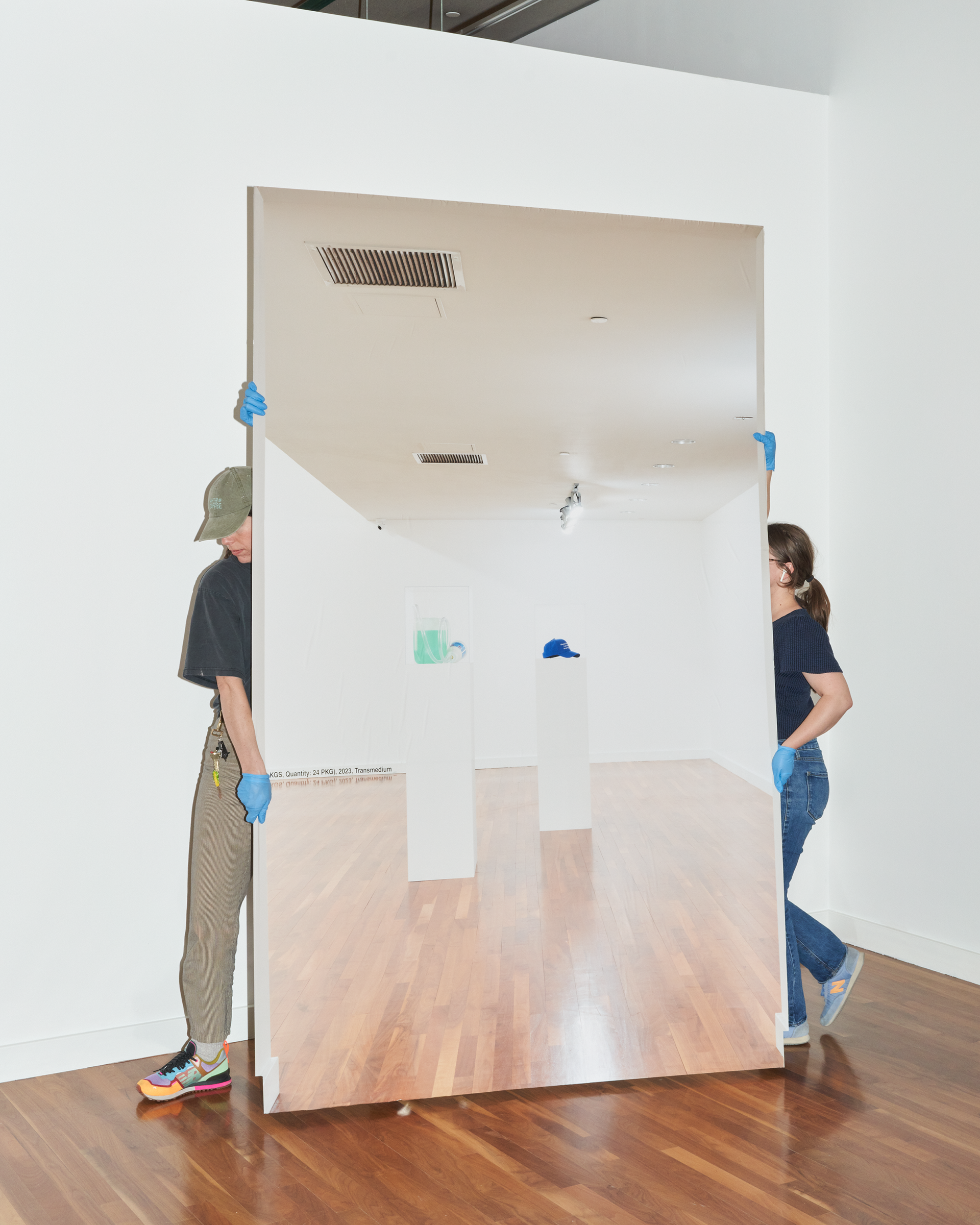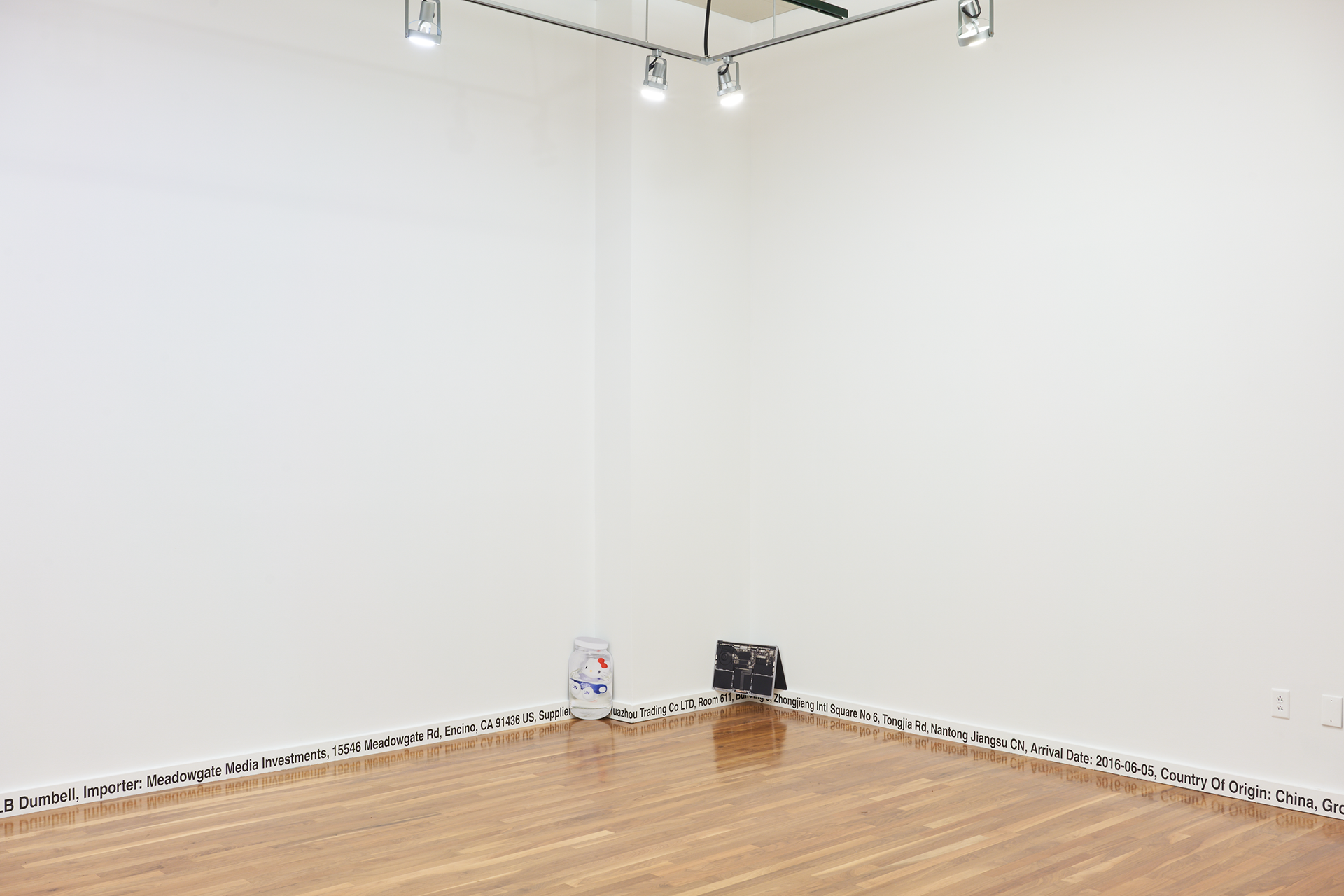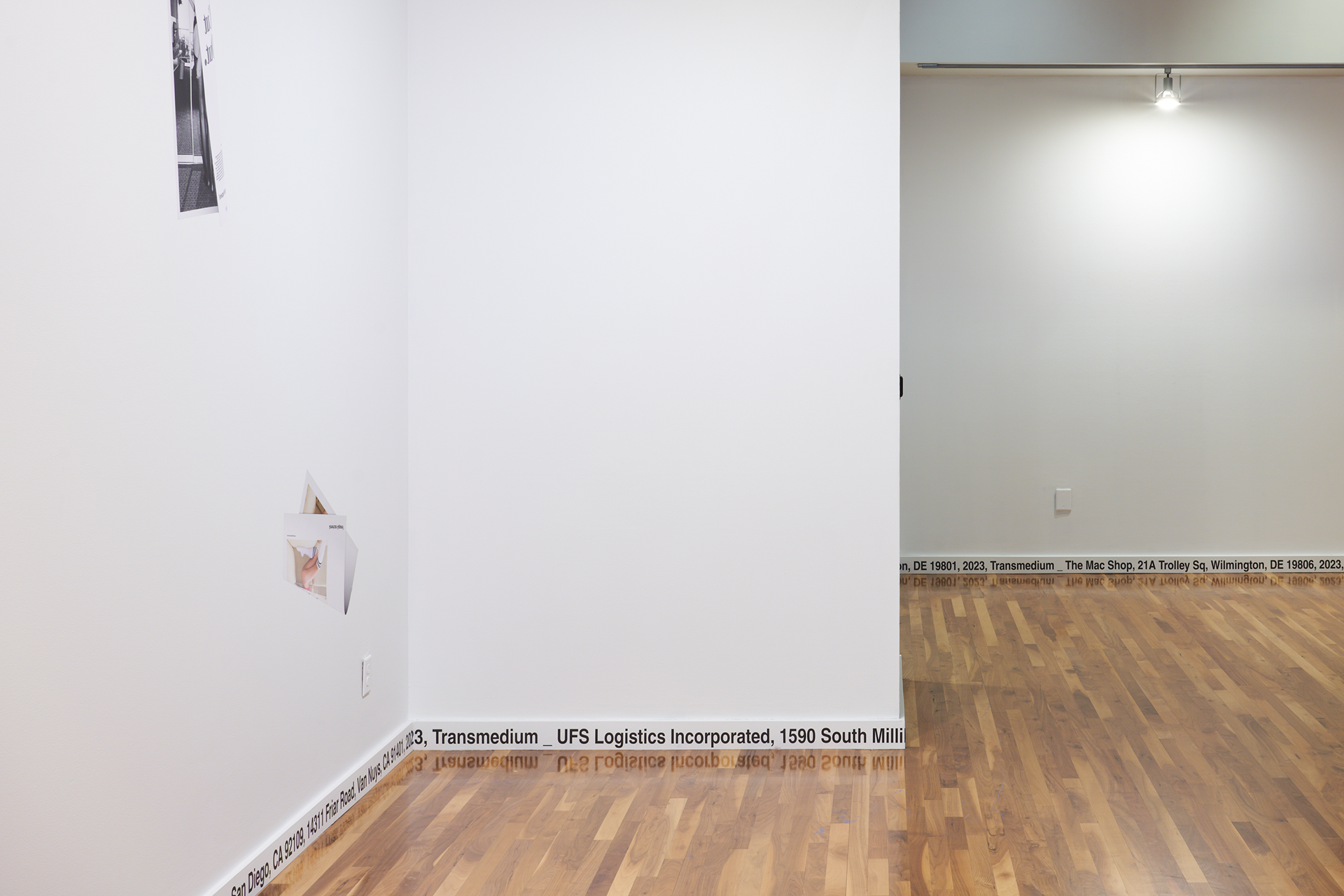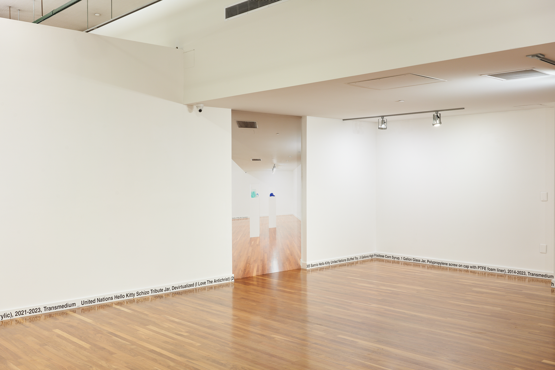 Title, Date, Medium, 2023, Exhibition checklist as vinyl on baseboard