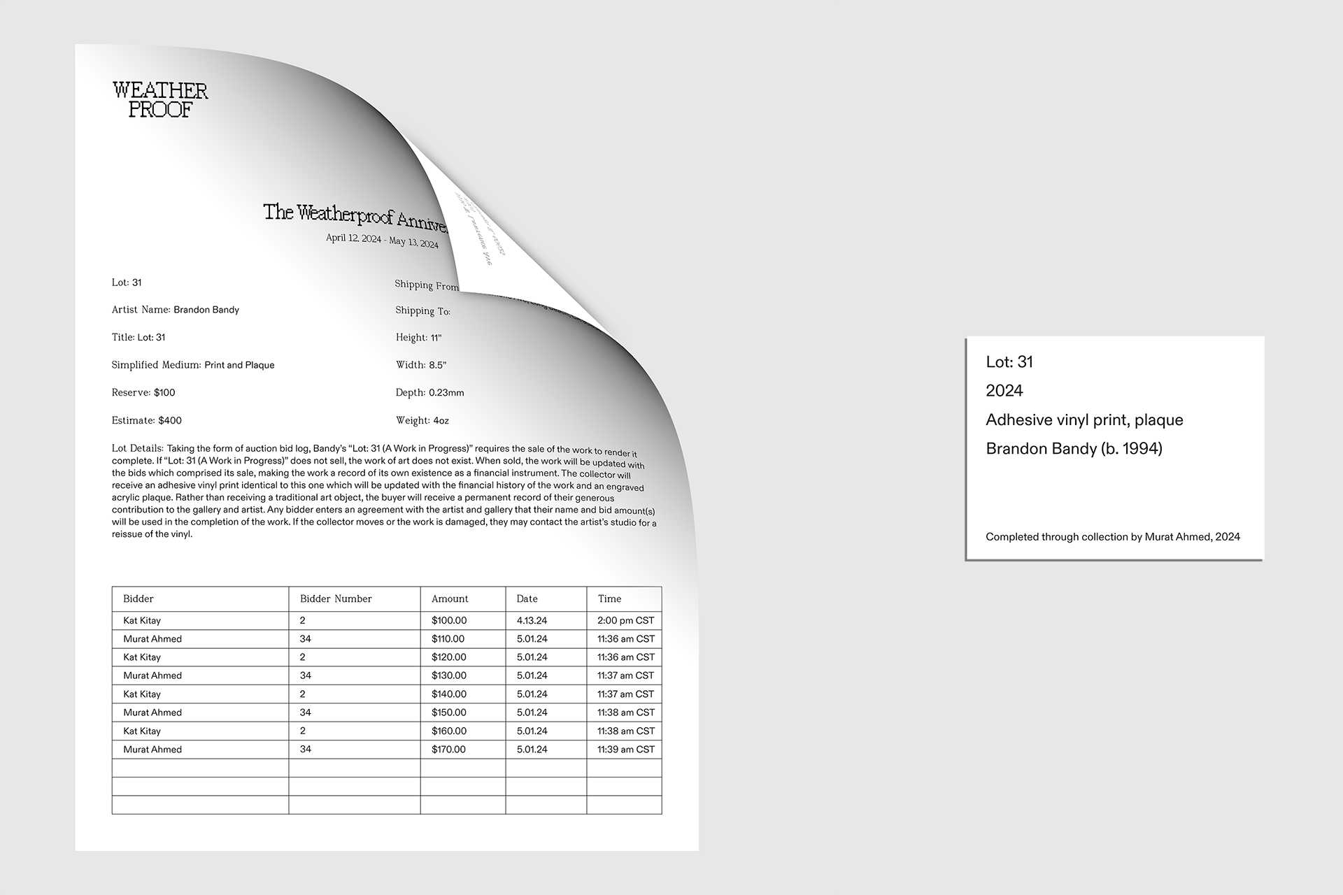 Weatherproof Benefit Auction Lot (Adhesive Vinyl Print and Plaque)